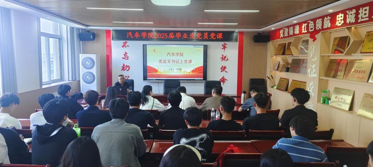 5月26日下午,汽车学院党总支书记雷旭锋在天鹅湖校区5512为2025届毕业生党员上了“离校前最后一次党课”,与24名即将踏上新征程的毕业生党员们共话初心、共忆成长、共寄嘱托。